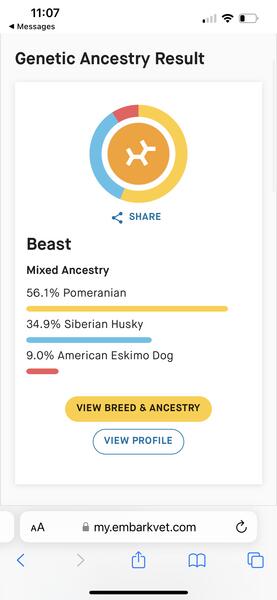 message pomskylady about this ad Beast is a 3 year old F2x Pomsky. He is about 10lbs and is embarked. He is crate trained, potty trained and overall well behaved. He has been around kids, cats and other dogs and does very well with them. Both testicles have descended though he is not proven as we have not used him as a stud. Embark results of notice: Carrier for DM. (1copy) Ee Kyky Awaw DD Bb No merle NDup |