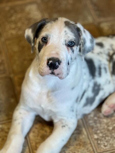 message jonicayauger412 about this ad "Samson" is an absolutely gorgeous blue harlequin male. He has had his dew claws removed, de-wormed, age appropriate vaccinations, full veterinary examination and microchipped with an AKC Reunite chip, which has lifetime registration pre-paid. He is well-socialized, very lovable and ready to go. |
