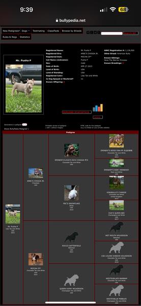 message snbkennels about this ad MR. PUSHA P 2-year-old male (ABKC REGISTERED) 16inches tall 25inch head 95 lbs Parents and pedigree included in pics. He gets taken to shows all over the east coast. Great in the stack offs. Can breed both naturally and artificially. Great with children and other dogs. Very gentle with people and children. Big lover and cuddles. Loves other dogs/animals. He is up to date on shots and vaccines. Looking to add dome, bone, muscle, and great temperament to any camp. Do not hesitate to contact me if you are interested. Im asking $750 with $250 to lock in. or $500 paid in full. Contact me at 757-449-7474 for more info/photos/videos. |