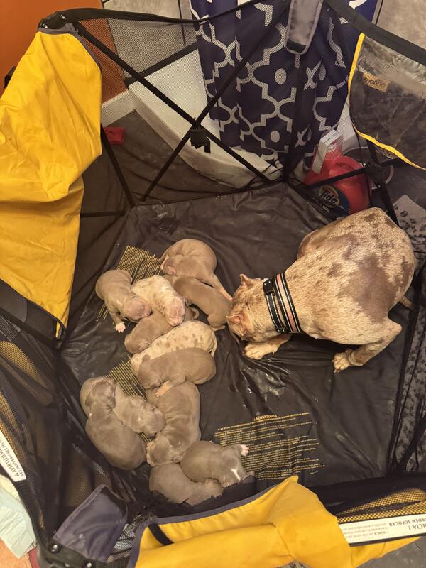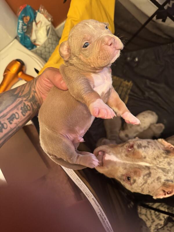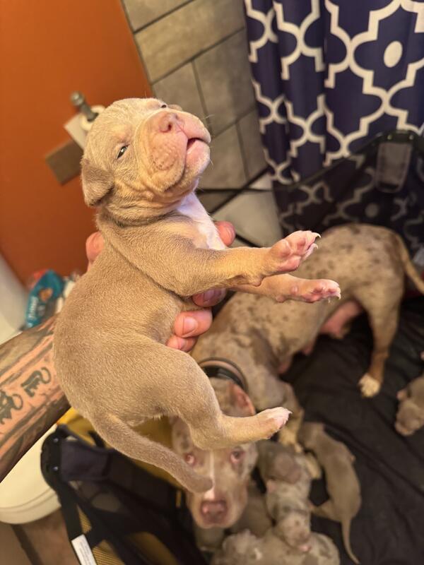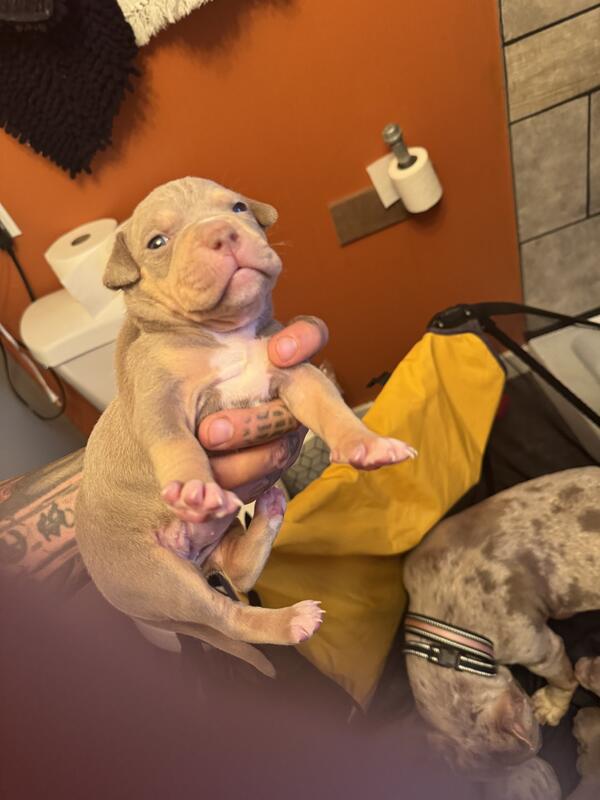 message derik about this ad Lilac and lilac tris today makes 3 weeks 12-7-25 lower end because litter doesnt have papers 8 pups lefts including the females Merle |