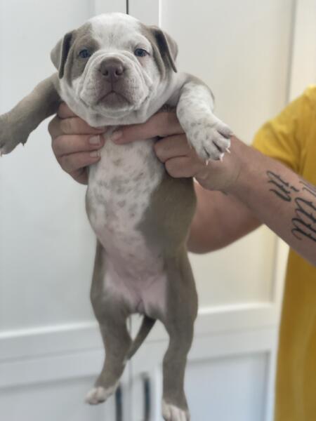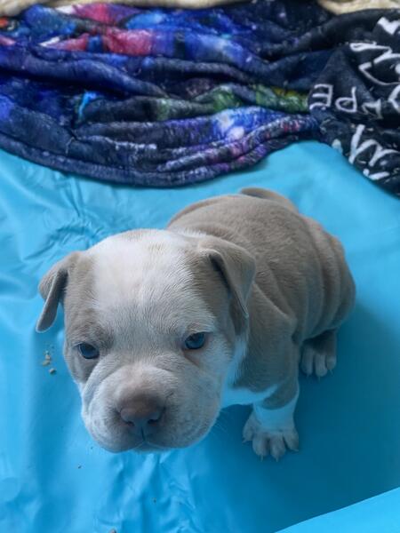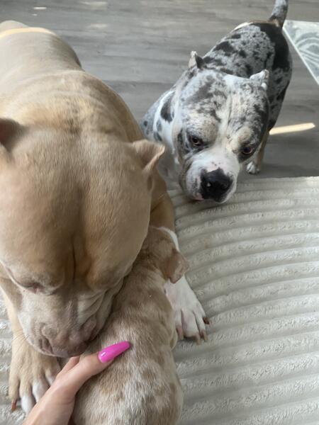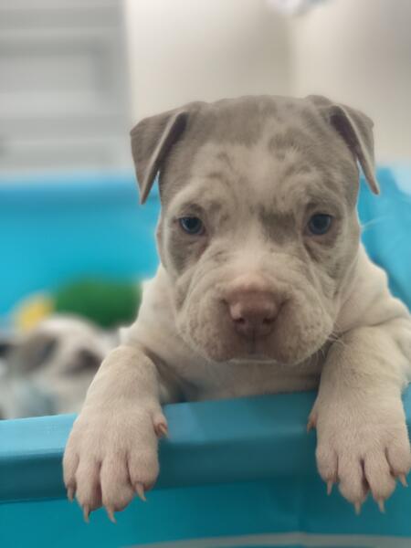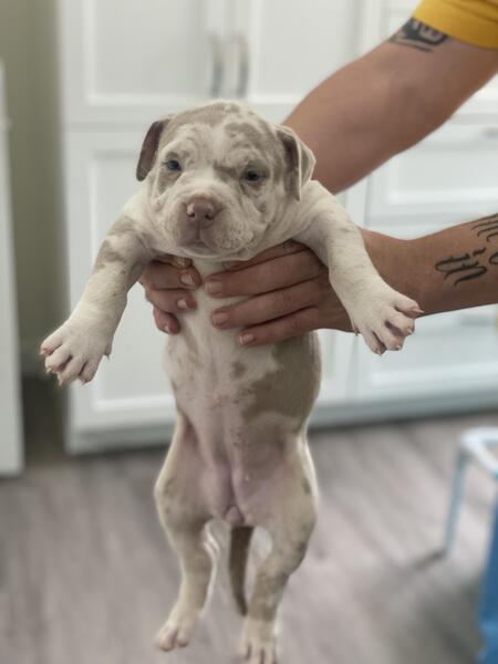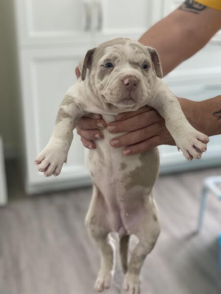 message bakerbullies about this ad Merle American Bullies FOR SALE. PM FOR DETAILS. 5 weeks old now. 3 Females. 1 runt. Adorable and come from serious backgrounds. PARENTS BOTH nCAME FROM NEW JERSEY. Can do prices. Fixed. Non fixed. First shots. Ears done. Or not done. Papers or no papers. Papers ears and background information possible. For the right price. Only serious inquiries only please. |