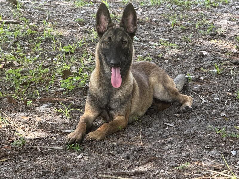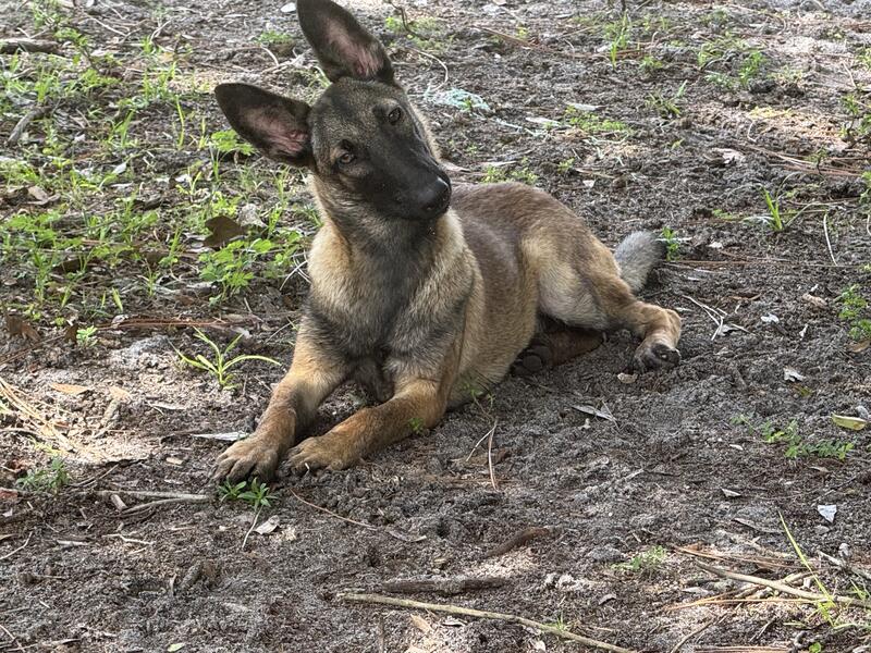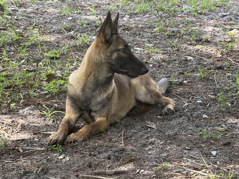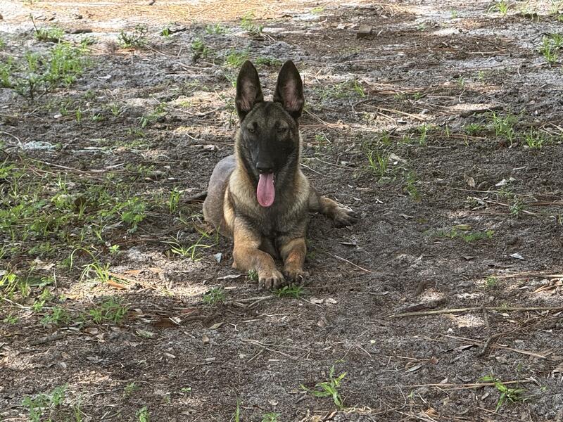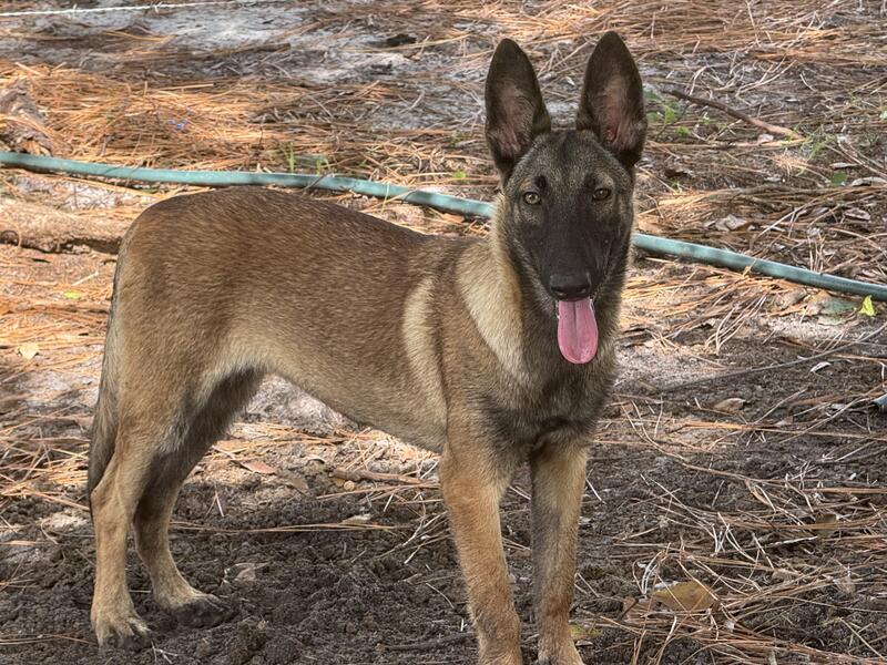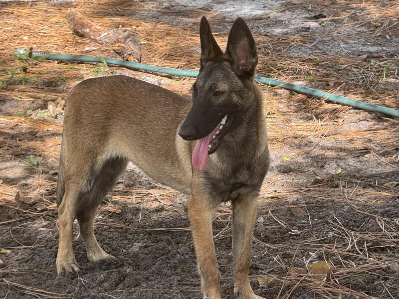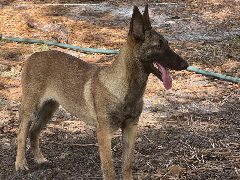 Beautiful Belgian Malinois female pup available. Full AKC registration, microchip and Florida health certificate included.