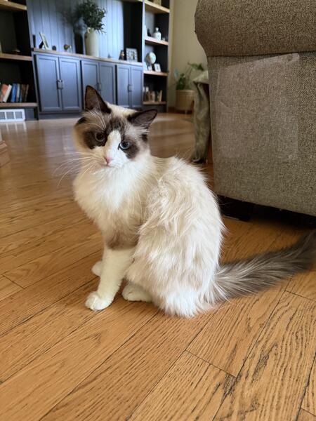 message jchapm09 about this ad We are looking to rehome our retired and spayed ragdoll queen. She is 1.5 years old and had one litter. She needs a home without other cats and young dogs. dogs needs to be indifferent to cats. She is very social but likes to be petted on her own terms. She loves laying in her cat tree or on the back of the couch. She is up to date on vaccines and Negative for FIV/FELV |