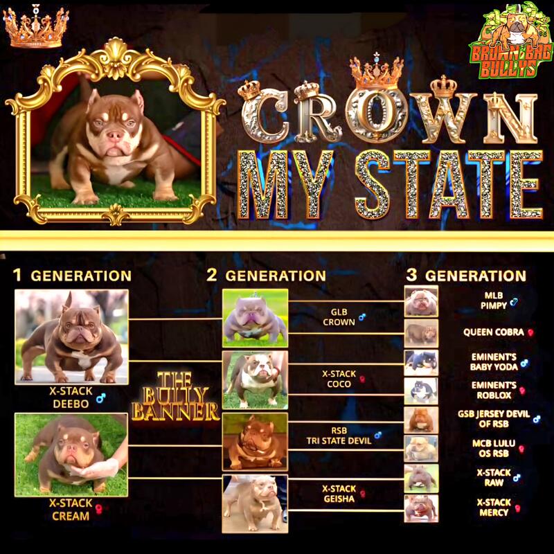 message brownbagbullys about this ad This boy lacks nothing, the Chocolate Tri color everyone wants, big head, chest drop, spread, bows, fronts, rears, muscle, tight skin, compact, fully functional, full tail, and a top of the line pedigree to back him up! Open for stud. If you are ready to turn your program to the next level tap in for more information! Crown blood Tri-State blood X stack raw blood pimpy blood daredevil blood bape blood all the exotic bully legends on one dog! And he is so clean he will elevate your pocket program as well message me or check us out on IG for more information @ Brownbagbully (609 554 0393) located in jersey live breedings welcome, can ship as well. Nano bully micro bully exotic bully |