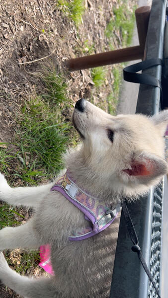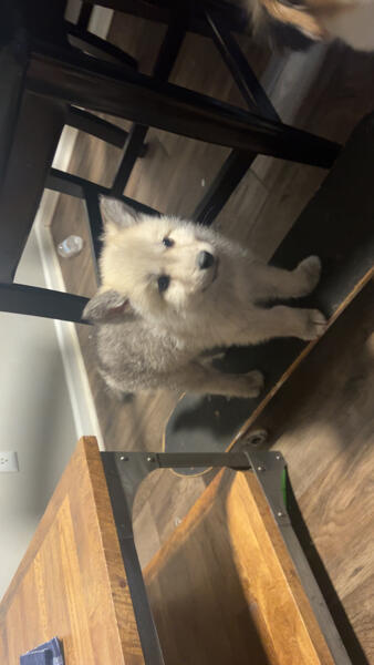 message mariahnicole209 about this ad 3.5 month old wolfdog pup. Shes Arctic wolf, gray wolf, and Alaskan malamute. She is great with other dogs and kids, but not with babies under 5 years old, as she tends to try to snatch food out of their hands. Up to date on puppy vaccines, dewormed, and vetted. |