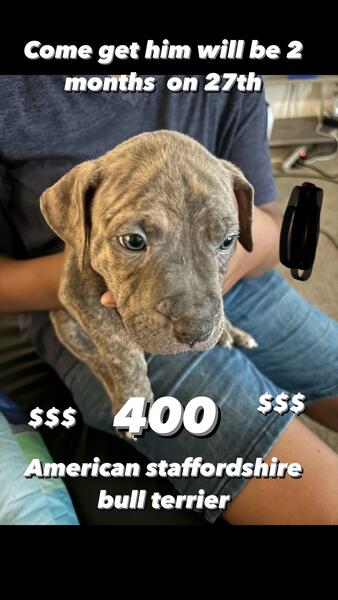 American Staffordshire Bull Terrier Pups For Sale -- 500.00