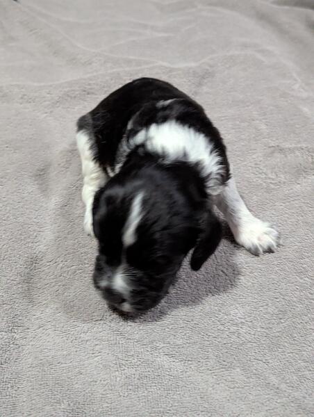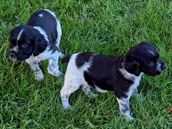 message wboll657 about this ad Piper whelped her litter June 7th. There were 2 males and 4 females. I still have two pups. Dam is 9 years old 28 pounds 18 inches at the shoulders, black/white roan. I've hunted grouse with her since she was a pup. She has good drive and natural ability. Sire is 5 years old 30 pounds 19 inches at the shoulders, black/white. He has scored well in North American Versatile Hunting Dog Association natural ability test, and has been hunted over regularly for grouse, pheasant, woodcock. Both have AKC & UKC Registration and good hip joint confirmation. Pups have been to the vet for a health assessment, had tails docked, and dewclaws removed. They're receiving wormer, and appropriate shots prior to going to their new homes. They have been introduced to a grouse wing, frozen quail, live birds, and all showed interest & good prey drive. They have been old enough for pickup since August 2nd. |