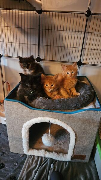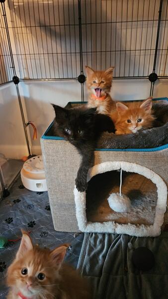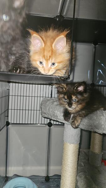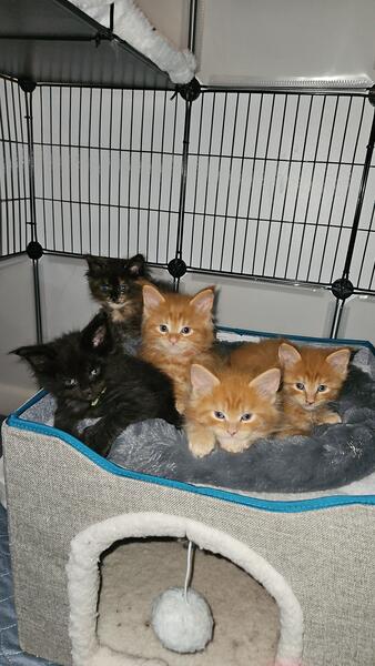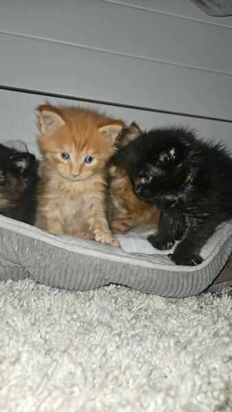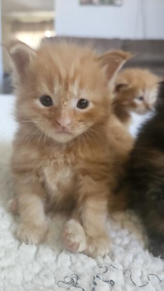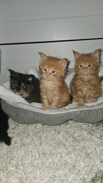 message wmainecoons about this ad Born 6/27/25 We have 3 red boys, 1 black female, and 1 black tortie female. Serious inquiries only please Message me for more details |