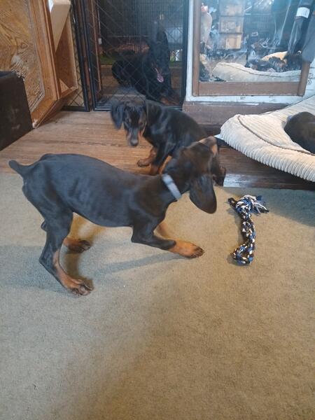 message omgguardians about this ad $1050 REDUCED PET PRICE DOB 8/11/25 13 weeks old and available to go home now. We are in MANSFIELD, OH, right down the street from Ohio health Mansfield hospital Doberman Pinscher Puppies LITTER INFO Description:Puppies are 4th generation in house. Mom,dad, granddam, & great grandsire all on site &cherished family members above all else. Full litter originally priced at $1800, Bones is our last available puppy and now reduced to find his forever family. Sweet, affectionate, joyful and goofy personality, Bones is all legs and love and cannot wait to be a part of your family. You can take this loverboy home today for just $1050 AKC PET REGISTATION- our keeper is scheduled for ears on the 20th - this Thursday. Reduced Price for Bones is valid until then, as we'd like to avoid the sibling rough housing, once she has stitches. breeding rights considered for additional cost to approved programs only- We will ask questions & seek verification on how your breeding dogs are treated and used. MALES ONLY. We no longer offer breeding rights on our girls. There is 1 black/rust boy still available. No more available Females - We are keeping one as the future of the 5th generation. Tails and dews done. Natural ears on all. Crop referrals available. UTD on shots and wormings. Records go home with puppy. Overnight crate trained Doing well with potty outside - Has not pooed in the house for several weeks. We're still working on peeing outside every time, but he does telegraph it well, walking in circles and sniffing, when he needs to go. If you get him outside in time, he does potty immediately and return to the door to come back inside. Reliable "sit" command No longer accepting deposits. Puppies are ready to go now. Cash only at in home pickup only. $300 deposit, in cash, check, or money order will be accepted to hold puppy of choice, while still in our home. Remaining balance @ pickup due in cash only. In home pickup only. PARENT INFO Genetically health tested parents. Results in pics. Breed: Doberman Pinscher Sire: Omg Madmortigan Eros (WS77893005) 3 years old as of August 8th, 2025. 95lbs Dam: Omg Guardians Promised Kismet (WS78013408) 3 years old as of September 12th, 2025. 75lbs AKC actively advocates for responsible dog ownership. The breeders have registered with AKC the sires, and dams and litters listed on AKC Marketplace. Individual puppies of these AKC - registered litters, therefore, are eligible to be registered with AKC. deposits are non-refundable but may be transferred to a future litters. Please be aware that our dogs are family first. As such, we only keep 2-3 breeding females at a time, resulting in 2-3 litters a year, to be fair to our girls. Should you choose/need to transfer your deposit to a future litter, there will likely be a 6+ month gap before that litter arrives and not all litters carry the same pricing. BREEDER INFO OMG Guardians is our FB page. Follow us for UTD photos. 30+ years breeding experience overall Vet med background 25+ years doberman specific experience 10+ years doberman specific breeding experience Puppies now in 14 states Several pups working in service with physically disabled adults and therapy with children Contact 567-560-1507-PLEASE LEAVE YOUR NAME AND CONTACT NUMBER WITH YOUR INQUIRY. We breed for longevity, health, and sound temperament. We fully understand and expect our puppies to be family friendly Guardians and companions. Our goal is to place long lived dogs into forever families, not flashy marketing gimmicks to sell a high priced "product Of course we want to sell your next family member to you as well, but we want it to be because your dog is so healthy, well rounded, easy to live with and predictable that you simply must have 2! Not because you lost your beloved family member sooner than expected. message omgguardians about this ad |