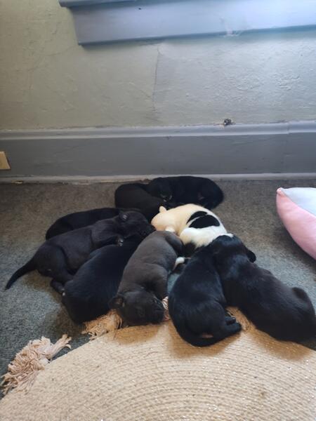 message neurology about this ad Mommy is a registered blue pit bull and daddy is a registered Lab, They are 2 weeks old, will be ready in 4 weeks for their new homes |