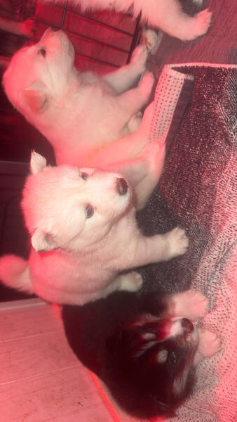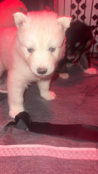 message manwitplans about this ad Currently 2 weeks old taking deposits asking 850 for females 800 for males they are going to be beautiful mark my words dad is akc Siberian husky white and so is akc Alaskan malamute 4 boys 3 girls 4 all white 3 black with white markings 1 all white female 2 all white male 2 black males 1 black female All white puppies are going to be huge they eat double very good eaters. Some dogs have that natural eating mentality some dont. The mom has that Eat anything mentality the dad doesnt more picky lol So the white ones got that personality Should be ready sept 24 taking deposits now Message me or text 7.5.7 2.6.68.5.2.5 |