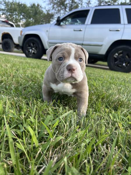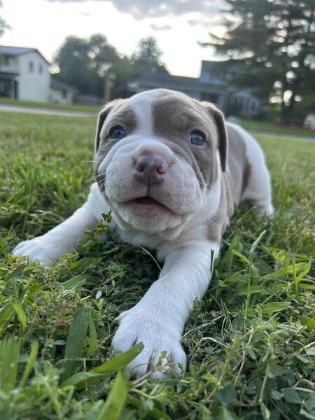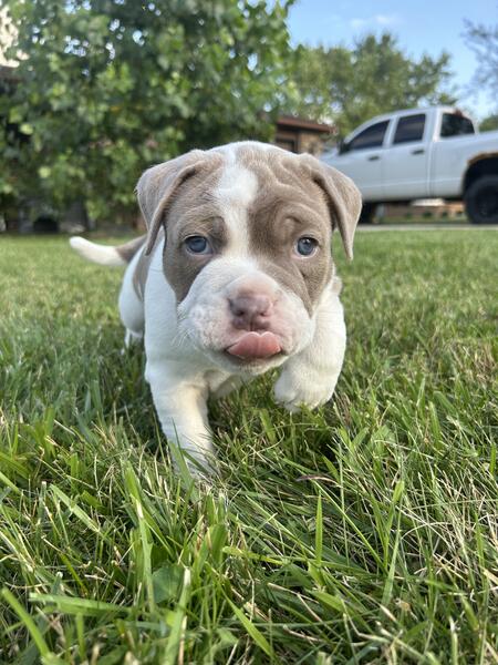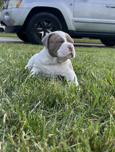 message kcurtin7911 about this ad We have two adorable Bulldog puppies looking for their fur-ever homes. One girl with a beautiful sand brown color and white markings on her little paws and head, and one boy with a balanced mix of white and sandy brown both have baby blue eyes. Mom is a pocket American bulldog and dad is an English bulldog. These pups will be ready for their new family on 8/25 Mom is ABKC certified but pups are not papered as this was a surprise litter Price is negotiable |