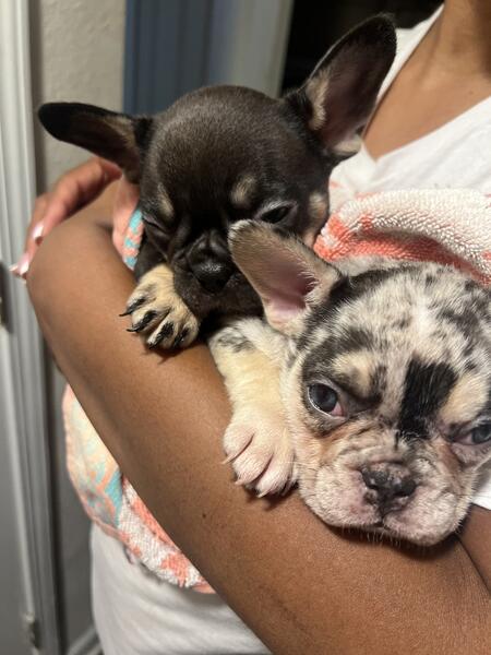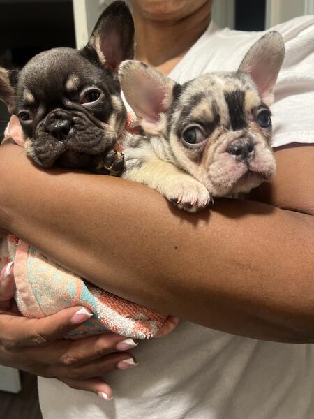 8 weeks Two Frenchie female AKC registered UTD on shots . Financing program available