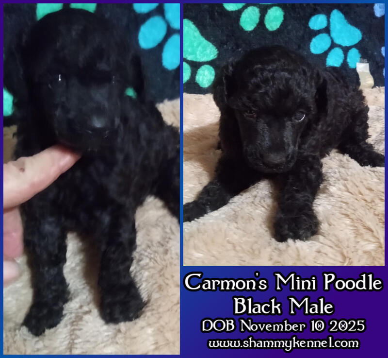 message shammykennel about this ad Black male miniature poodle. Red and brown carrier. DOB Nov. 10, 2025. Will have age appropriate vaccinations and genetic health guarantee. Pet price is $500, CKC registration for breeding is $850. Additional photos and information can be found on my website, shammykennel.com. Phone or text 870-371-3193 CST. |