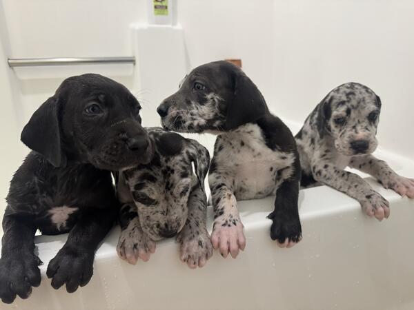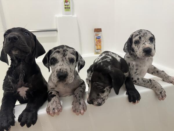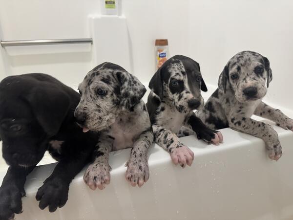 message giovannihouston about this ad Great Dane puppies, owner of both parents. Parents are full blooded but not AKC registered. Pictures of parents provided. Puppies were born April 6th. Ready for new homes June 1st! All girls. Only 2 spotted ones left! (Black one, and the one with half split face are taken) |