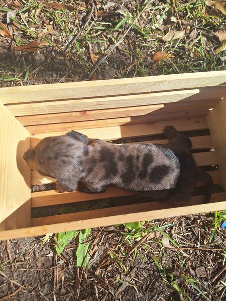 message hjngls8493 about this ad I have three little boys looking for their forever home this Thanksgiving! I have a silver dapple baby who is as gorgeous as he is sweet, a black and tan who is the smallest of the bunch, but is making up for it in personality, amd a stunning little red- the classic weiner dog. We are an Army family and received orders that we have to move over Thanksgiving weekend, so all the babies need to be picked up by then, please. We cannot take them with us. They will be young- 6 weeks at pickup, but our vet assured us they will be just fine and ready for their new homes. Please feel free to text or call with any questions! |