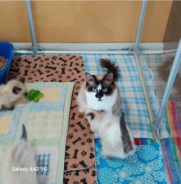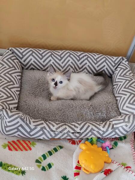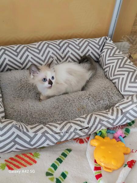 message enjoylife about this ad Seal point bi-color male Ragdoll kitten. He is family raised and a friendly kitten who enjoys being held. This little guy has the cutest triangle on his nose he looks like Raggedy Andy. lol He has been vet checked first shot and dewormings. He goes home with his health record, food, blankie and toy with siblings scent. Located in Belding, MI Please text or call me at 616-250-5894 |