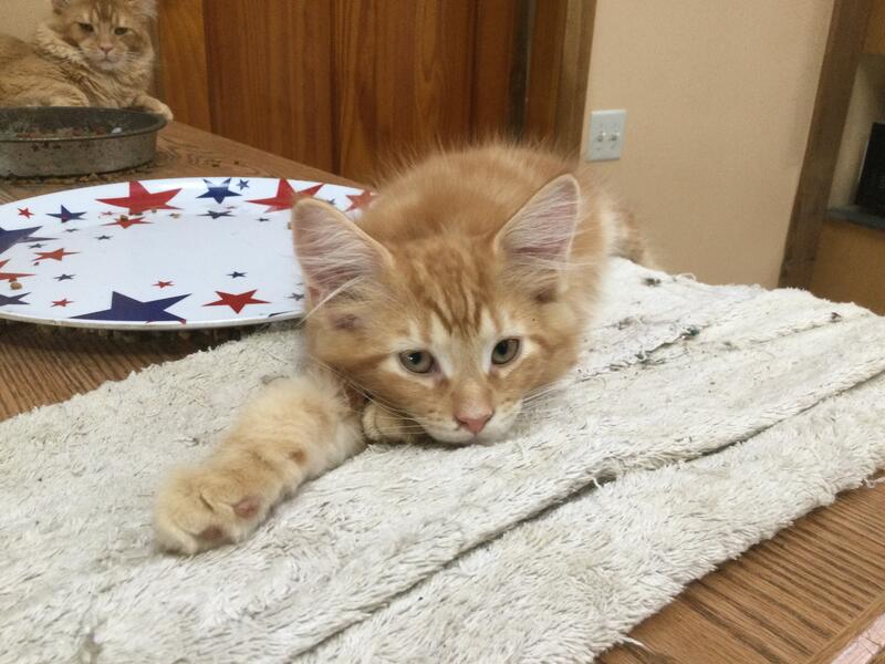 message radam1 about this ad we have 2 females and 10 male Maine Coon cats with good markings; they are raised in the house and very friendly with a good range of colors and some of the males are polydactyl; all parents are in the house and we offer a health guarantee |