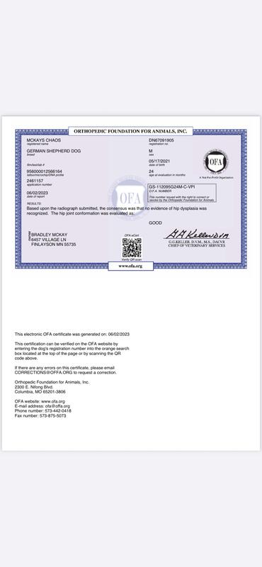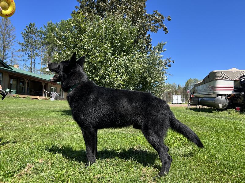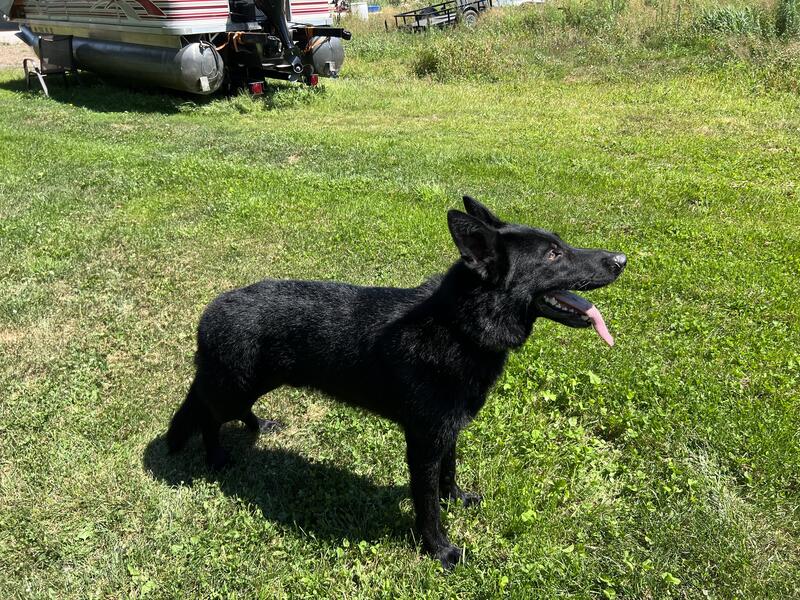 message bam22 about this ad Black German shepherd male AKC OFA D:O:B 5/17/21 Proven sire High energy Very smart Has back dew claws (genetic) Microchipped Genetic tested/dm carrier Good with kids Good with cats Good with female dogs Good with strangers Kennels Never ran away Good on leash Comes when called Up to date on vaccines $1000 Finlayson mn |