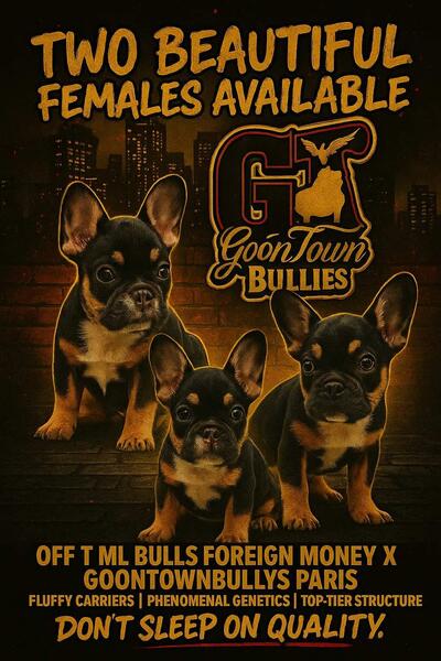message goontownbullys about this ad Dont scroll past greatness We got TWO bad lil ladies off T ML Bulls Foreign Money x GoontownBullys Paris Fluffy carriers with structure thatll make your stud rethink his purpose AKC ready Shots done Waiting on their new zip code Tap in: 484-908-3212 |
