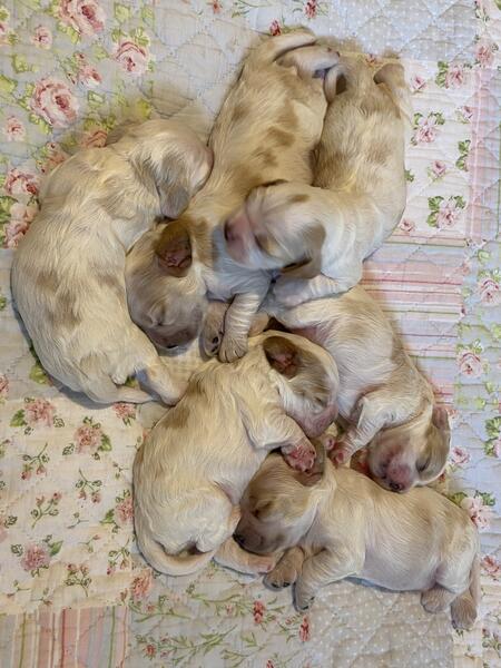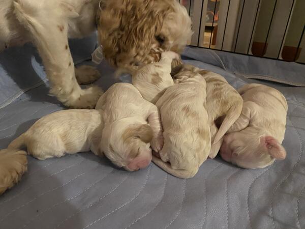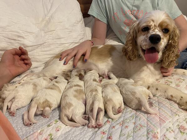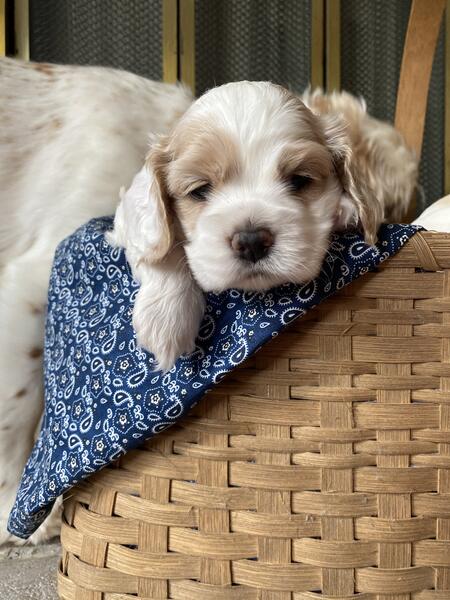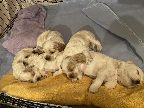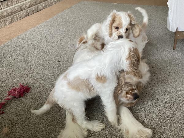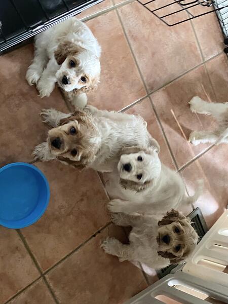 message mrwgraber about this ad We have 4 girls, 2 boys. They are AKC registered and have been raised in our families home with four children and lots of cousins and grandparents along with our golden retriever Sadie. They have very sweet tempered parents and they are proving to be some very sweet puppies. They are happy, playful, sweet and spunky! They are wonderful family dogs with children. They have also been cared for by our vet and will go home with vet papers and akc papers. We are asking $1100 with a $200 deposit. I take cash or Venmo. I have a Facebook page Sweet Peach Cocker Spaniels to see pictures and videos of our puppies. Please text with questions and availability and I will do my best to answer within the same day. Thank you! 5l3-799-l4l4 Puppy 1- Juniper, Puppy 2- Rosie, Puppy 3- Toby, Puppy 4- Tucker, Puppy 5- Magnolia, Puppy 6- Violet |