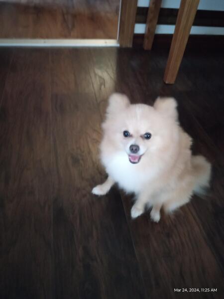 Pomeranian dog 4 lb white and cream color ready for studying just had litter still have 3 beautiful puppies left. 1800 for pups