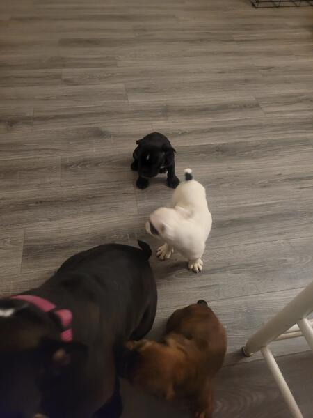 message kabrams08 about this ad Available pups 10 weeks old D.O.B - March 10, 2025 Female - White w/ Brindle patches on eyes Female - All Brindle Male - Black w/ White chest 1st shots, dewormed Asking $750 obo |