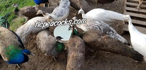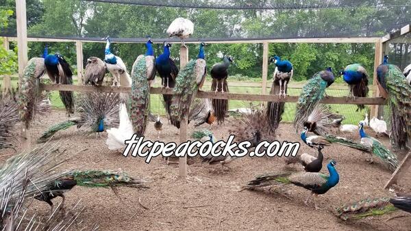 message tlcpeacocks about this ad Ohio River Peafowl We raise over 35 varieties of peafowl and have a nice selection of pairs and some extra males available in many varieties. They range from yearlings to adult breeders. We have extra breeder peahens at this time. Birds are shipped Express Mail with a 1-2 day delivery. Shipping boxes are $30 each plus postage and insurance. All birds are treated for internal and external parasites before leaving the farm. We are an NPIP clean farm. India Blue Pairs -Yearling pair $425 -Two-year-old pair $500 Adult Breeder Pair $575 India Blue Males -Yearling males $100 -Two-year-old male $150 -Adult Breeder males $200 White, Purple, Opal, Bronze, IB White Eyed, IB Pied or IBWE Pairs Yearling pairs $550 -Two-year-old pair $600 -Adult Breeder pair. $750 Less common varieties like Violeta, Violeta Pied, Bronze Pied, Bronze Black Shoulder, Bronze Black Shoulder White Eye, Opal White Eye, Peach and Cameo are higher. Please ask if you are looking for a specific color. We may have it. message tlcpeacocks about this ad |