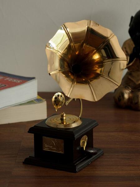 message pritee about this ad Product Highlights Share Deals Get Orders from Friends & Family Earn Money Transfer to Bank Earn Upto 8.5% Profit on all Myntra Transactions Profit will track within 1 hour from the time of transaction Profit will get confirmed within 80 days of transaction Product Code: 6698630 Colour: Gold-toned and brown Size: Medium Pattern: Solid Shape: Antique Music Decorative Gramophone Feature: Handcrafted Disclaimer: As these products are handcrafted, there might be a slight colour variation, which is natural, hence makes them unique. Dimensions: 10.16 cm x 10.16 cm x 24.13 cm (length x width x height) Brighten up the dull and boring ambience of your living room with this showpiece from eCraftIndia. Gift these to your loved ones, friends and family to delight them. Brass Wipe with a clean, dry cloth when needed httpsmyntr.it/DFO4Svv |