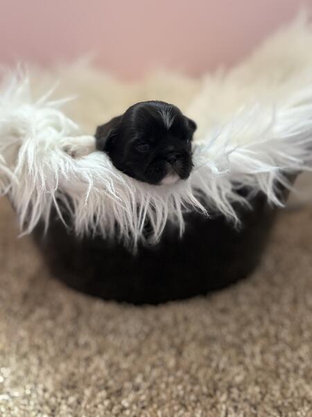message ashleyapplegate18 about this ad These 3 males are perfect! They will be well socialized. They have big, wide set eyes, beautiful easy care coat, short little legs, and a cobby bodies. They will be introduced to blow drying and nail, face and paw trimmings. They will be vet checked, and come with a health guarantee. Puppies will be pee pad trained. The blood line is out of a show breed from Texas. We are asking $950 |