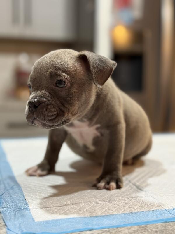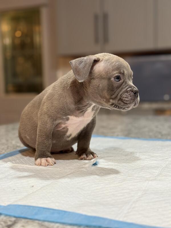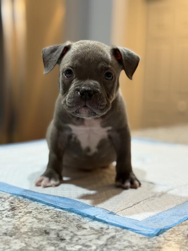 message arinreyna about this ad Blue Brindle Micro Male American Bully puppy ready for new couch, ready to steal your heart. Father :Sonic the Bull Mother:Venus Takeoff bloodline meets outcast bloodline ABR registered and completely up to date on dewormer and vaccinations. Bullwinkle 8wks in a few days and is hoping to end up under your Christmas tree . Very chunky and healthy little guy. If your have any interests in Bullwinkle feel free to call message or FaceTime me 2694869061. Thank you |