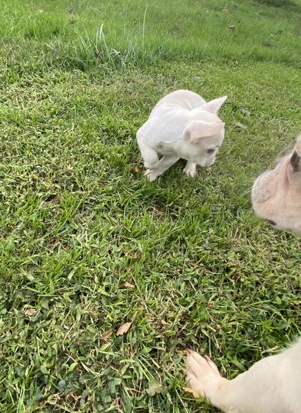 message tishea about this ad AKC registered French Bulldog cream male puppy. Born Aug.16, 2025. Mom is playing with him in one of the pictures. She is a platinum. (Carries chocolate and all the good colors Dad is a micro fluffy cream (14lbs nice square confirmation with a wide chest and big head) Grandfather is Micro Jordan. Both sides carry lots of color! Pics of Dad and Grandfather shown. This boy isnt a micro, but he will be small. Mom is only 22lbs. Vaccinated, dewormed and health cleared by Veterinarian. Comes with veterinarian paperwork. Pet price $1200. Breeder Full AKC registration price $1800. |