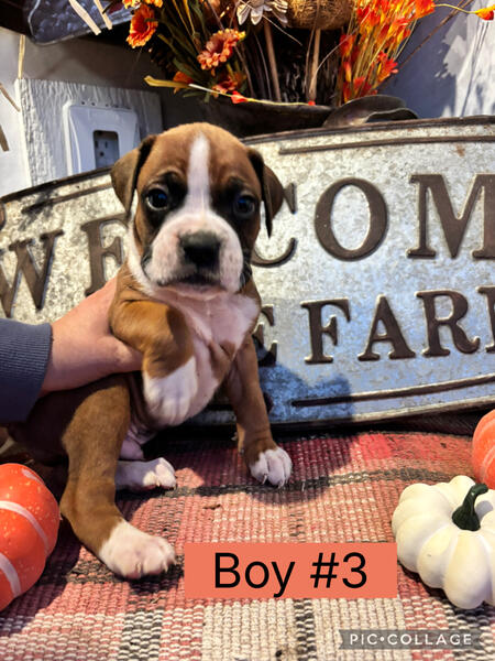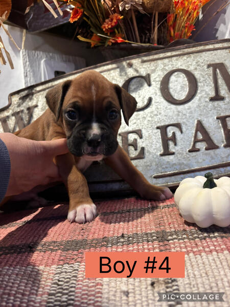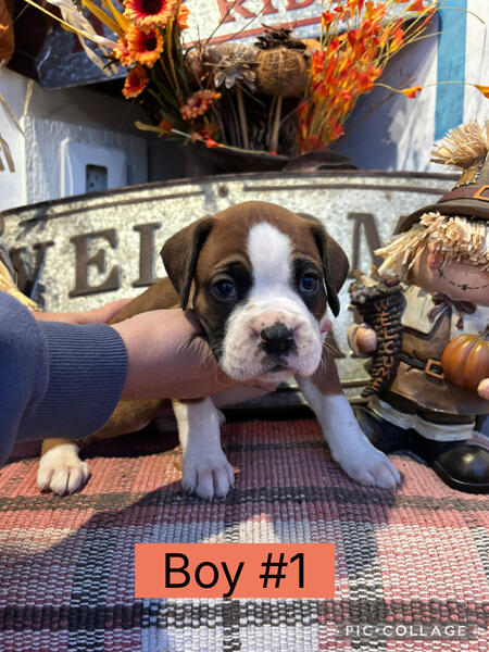 message vrknw787 about this ad We have boxer pups for sale Tails docked and dew claws removed Will have first set of shots before leave Socialized with kids Ready September 28 218-380-3018 call or text |