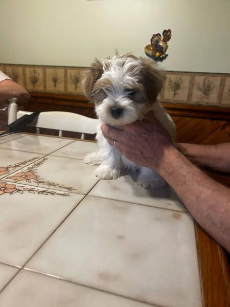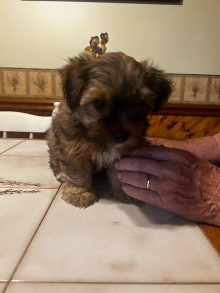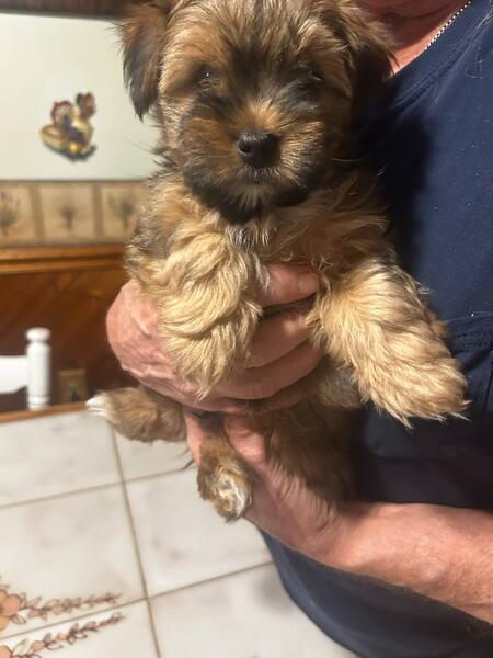 message chucksvuv about this ad 2 male chorkies, have all their shots, wormed, tails docked, due claws removed, & wormed. Born 2/23/25. Kevin is the brown 1, Brutus is the whiter 1. $400 each. |