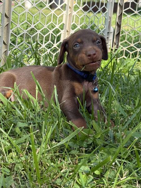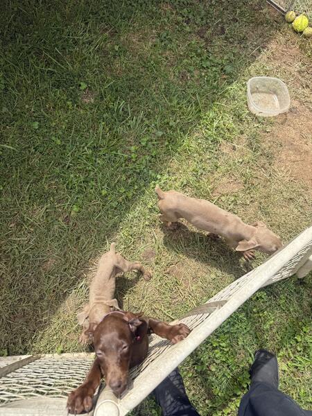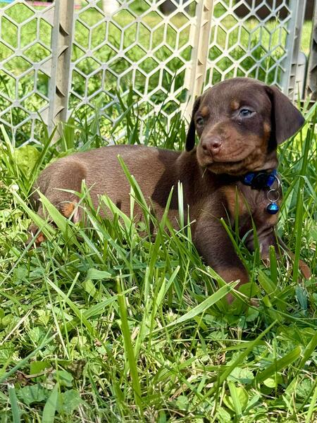 message trtldvg677 about this ad Born 4/11/25 9 weeks old AKC registered Doberman pups 3 males available two fawn one red and rust . tails docked, and do claws removed they have had there first set of shots and have been strayed on heartworm and flea and tick preventionThey will come with a litter certificateRamseur NC. (336)465-2470 1Melanistic Red 2 Melanistic Fawn |