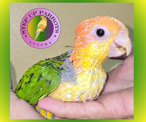 message stepupparrots about this ad Adorable White-Bellied Caique Baby for Sale! Are you ready to add a bundle of joy to your life? Meet our playful and charming white-bellied caique baby! These vibrant and friendly parrots are known for their entertaining personalities and beautiful plumage. About the Caique: Age: Hatched April 4, 2025 Gender: Female Health: Vet-checked and in perfect health Personality: Extremely social, playful, and affectionate Diet: Being hand-fed twice daily and currently weaning onto a diet of fresh fruits, vegetables, and high- quality pellets Why Choose a White-Bellied Caique? Interactive and Fun: These birds are known for their playful antics and love of interaction. Beautiful Colors: Their striking green, yellow, and white feathers make them a standout addition to any home. Lifespan: With proper care, they can be a lifelong companion. Dont miss out on the chance to welcome this delightful feathered friend into your home. Contact us today to schedule a visit and meet your new family member! message stepupparrots about this ad |