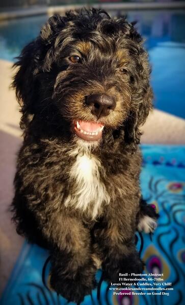 message shlck957 about this ad We have a beautiful litter of Standard F1 Brindle Bernedoodle Puppies from AKC Registered and Genetically Health Tested parents. Sire also has OFA testing. Adult size for the females is expected to be between 60 to 80lbs, and for the males 70 to 90lbs. We used the Misty method for house training starting at 3 weeks, so potty training has been a breeze. They are crate trained and housebroke, They know sit, down, stay and walk nicely on leash. They are currently working on drop and shake/high 5. They have been dewormed, been health checked by our Vet, had 3 rounds of DHPP puppy vaccinations and their Rabies vaccination. Each puppy comes with an 18 month health guarantee. Our puppies are born and raised in our home, with our large family, and other adult dogs. They are raised around typical household noises to get them used to sounds before going home. They are well socialized to people of all ages, usually children 6 months of age and up, and they are very friendly when they go to new families. We have started conditioning them to grooming - including brushing, nail trimming and bathing. Colors include Brindle with Bernese Mountain Dog markings, Phantom with Abstract, and Tri-Color. You can find out more by visiting our website at www.cookiesandcreamdoodles.com or checking out our listing on Good Dog. Videos and pictures of the puppies are available on our YouTube channel, Facebook and Instagram. We look forward to helping you find your perfect fur-baby! Puppy pricing is - Basil $2500 and Azalea $3500. message shlck957 about this ad |