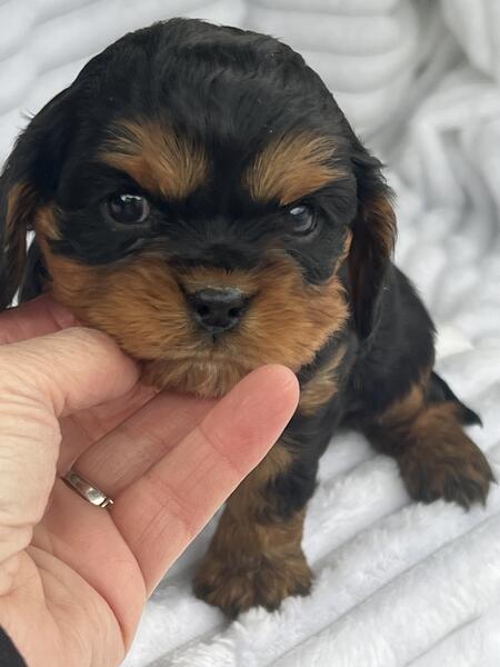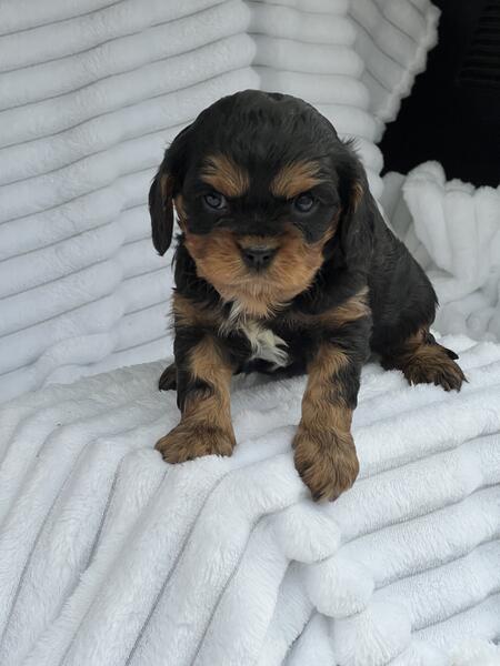 message handilyrapt about this ad Brynlee is a precious Cavalier King Charles puppy. Her DOB:10-16-25. Can go home on or after December 11. She wiill have all age appropriate shots and worming. Parents are Registered but pups are being sold without papers as pets only. Will hold with a $50 Venmo deposit then cash balance at pick up. Or no deposit come meet her in person at 8 weeks old and if shes still available, youll be able to take her home the same day. Please no scammers dont waste my time or yours. This is a in person cash sale only. Mom is 20 pounds and Dad is 18 pounds. |