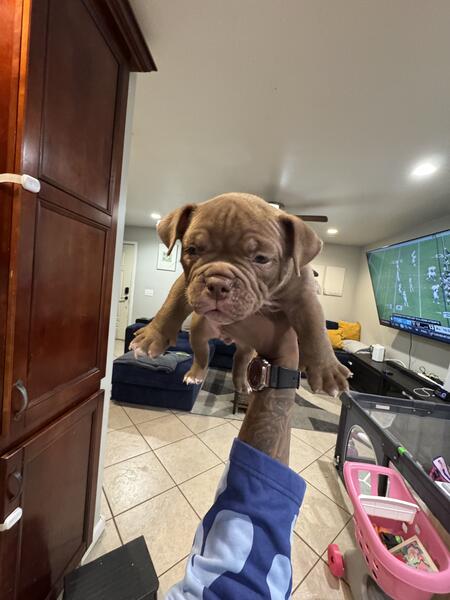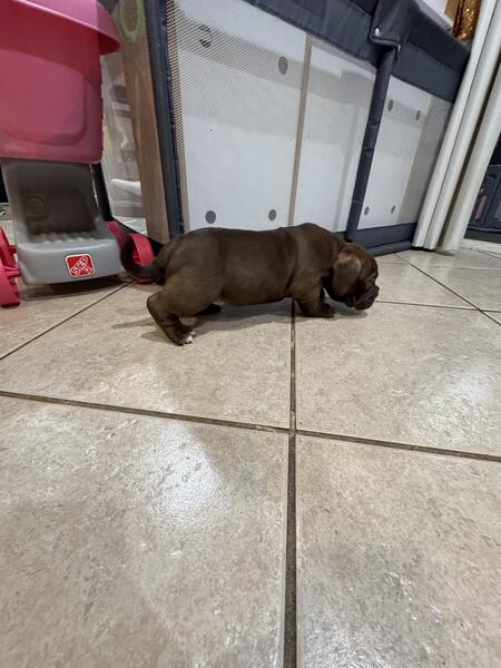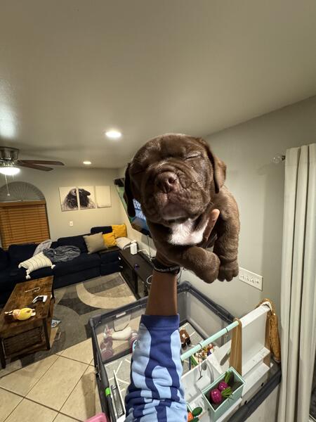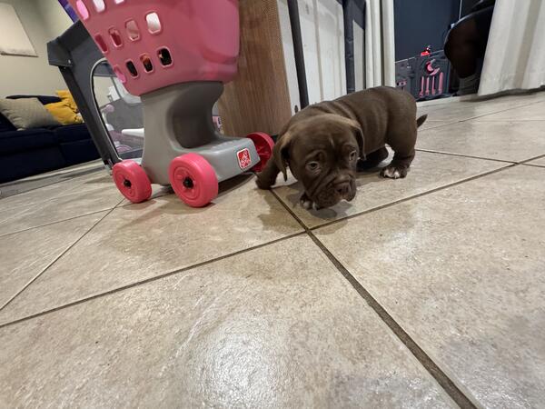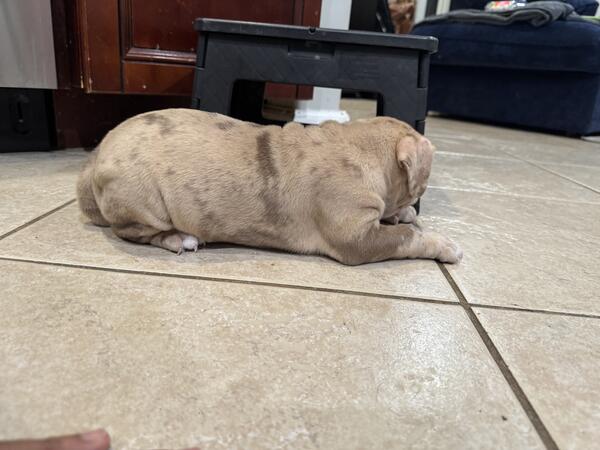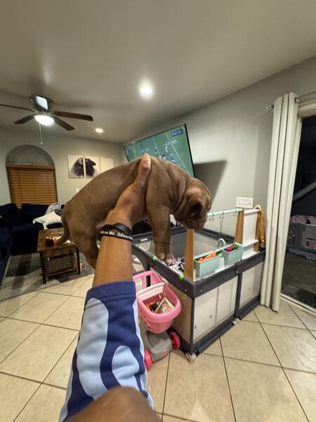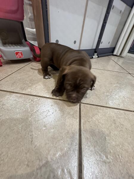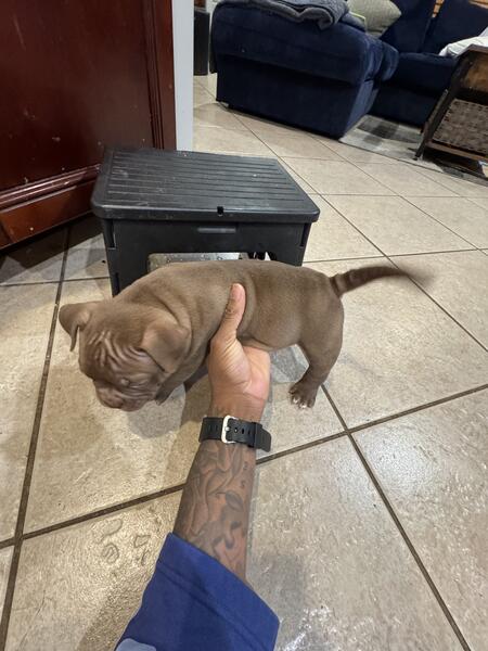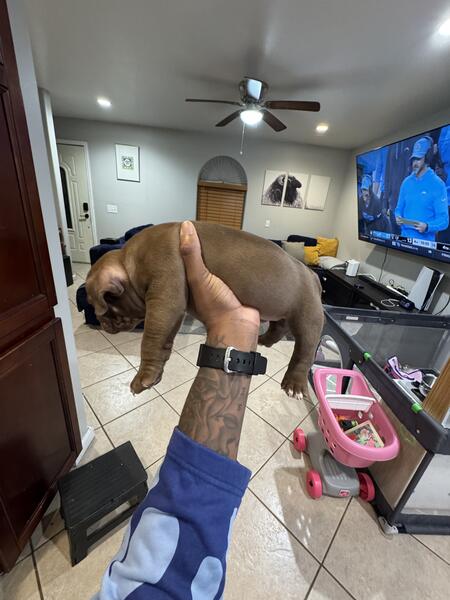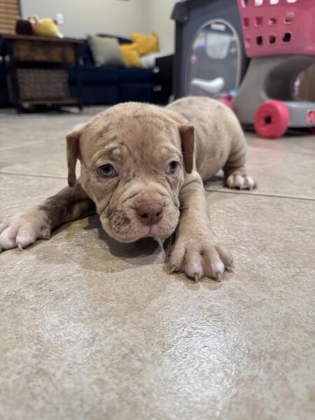message asstudioscoachk about this ad 6 week old, pocket sized, male American bully puppy. Both parents are ABR certified. This pup is a Merle carrier as his father is a tri-merle. Beautiful baby boy who already has a ton of energy and loves to play. Also good around babies. Would make a great life-long companion. Willing to work with price. Feel free to ask any questions regarding shots and registration paper work. |