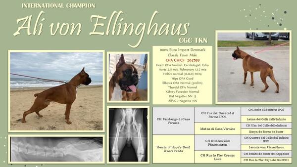 message cadogans about this ad At stud only! Health tested, champion 100% euro imported from Denmark CLASSIC fawn boxer stud. Can not produce white pups, all pups will be fawn or brindle depending on mommas color. Quality bloodline, exceptional temperament and health. At stud only! |