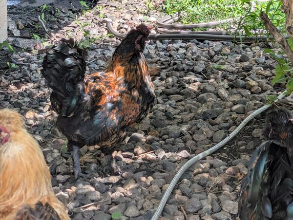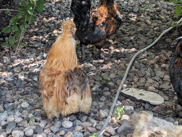 Silky Roosters (fawn in color) and one Silky Australorp mix Rooster