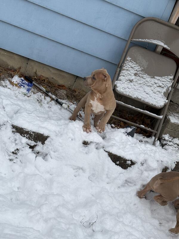 message jmnbullies143 about this ad Im asking 1200 they come with abkc paperwork, their first two rounds of shots they are just now due for them today, a micro chip, and a simparica trio that u can only get from a vet (I work at a vet) mom is a standard fawn and dad is an xl blue brindle. Grandparents are in pictures. Price is for breeding rights. |