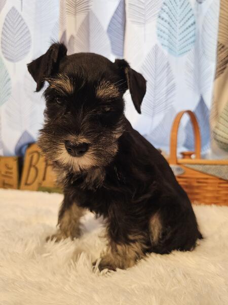 message abritt about this ad AKC registered Black and Silver Female Miniature Schnauzer Puppy. Sweet Pea has wonderful markings and is cute as can be. She is absolutely stunning! She was born on September 14, 2025 and is ready to go to her new home NOW! Sweet Pea is the most precious little girl! She will make a great addition to your home for the upcoming holidays! Sweet Pea, along with her parents, look the way schnauzers should look and is more than qualified to participate in the AKC show ring. I do not breed party, toy, or blue-eyed schnauzers. We breed our schnauzers for looks, intelligence, and health. Sweet Pea will be up to date on her shots and worming and will come with a 1-year health guarantee. Potty training has also been started! If you have any questions, please don't hesitate to call me at 419-569-0683. You are more than welcome to come in person to our home to meet Sweet Pea. Pictures of mom and dad are shown and puppy pictures will be updated weekly. We are located in Bucyrus, Ohio. message abritt about this ad |