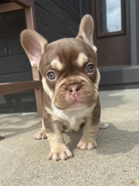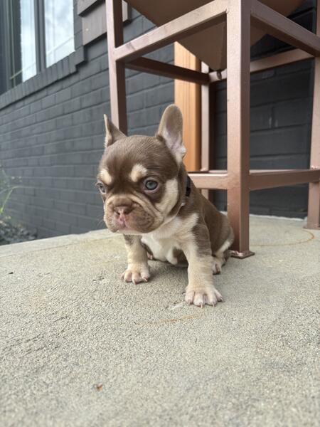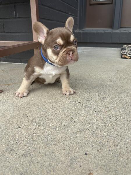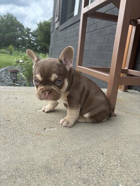 message guccifrenchies about this ad This is goose. He is a double chocolate and tan French bulldog male. He was born 6/3/25 and ready to go home on July 29th both his parents are fully health tested. The father is OFA tested for his spine, hips, and patellas. He comes with a one year health guarantee vet checked first round of shots, fully dewormed and a Puppy package. Text me at 319-231-5993 www.guccifrenchies.com |