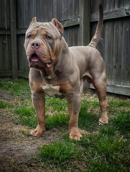 message aftershockkennels about this ad Nawfside Rolo of Aftershock kennels is open for stud! Lilac tri /140 pounds / 28in head / phenomenal temperament / 23in TTW Sire: Laforces Draco Dam: Nawfside Lizzo Contact: Andrew 704-777-1036 |