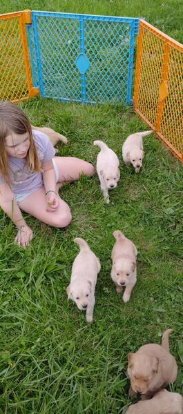 message oldwhtchvy69 about this ad Playful, adorable Golden Retriever pups, ready for new homes the first week of June. Great with people and other dogs and they've been around kids since birth. Current on vaccinations, dewormed, vet checked with a vet exam sheet, and they are registered and will come with their puppy registration paper. Call or text (319)371-7957 if you would like to come meet them! |