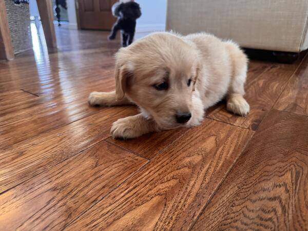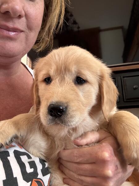 message erickakramer about this ad 3 AKC Male Golden Retriever, 1AKC Female Golden Retriever. These little boys and little girl will be ready to go home 3/31/25. Theyve had their first shots been dewormed three times vet checked. These babies are precious. Message me if youre interested. 937-417-5755. |