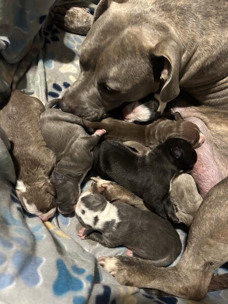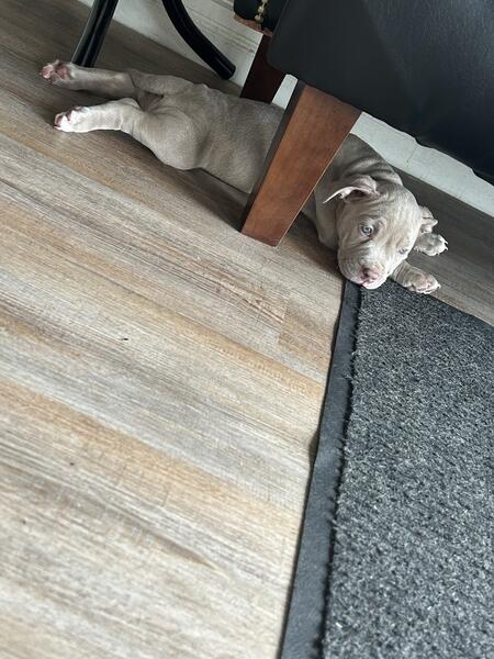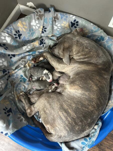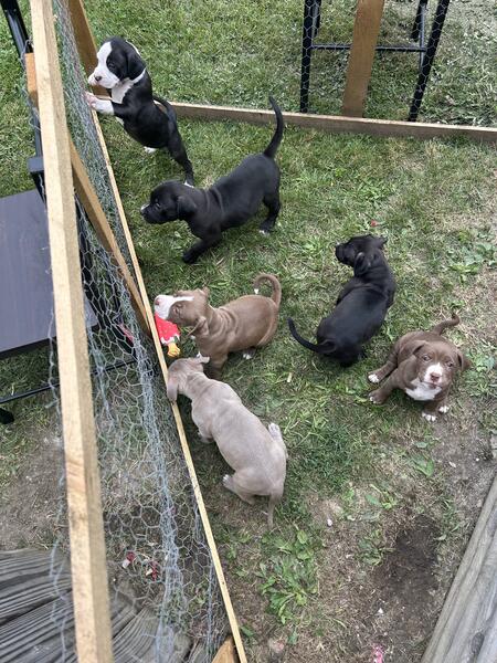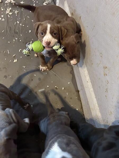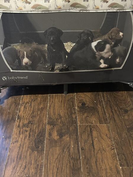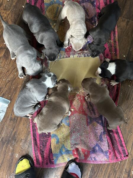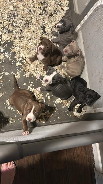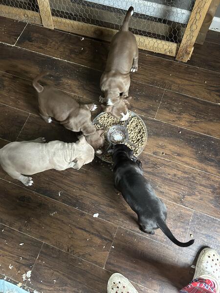 message jaclynf1120 about this ad 4 females xl American bully/pit puppies born June 4 2025 they will have shots and be dewormed July 16 2025. Dad is white and black, Mom is blue brindle. Will add more pics as they grow for more details please text 5676869054 |