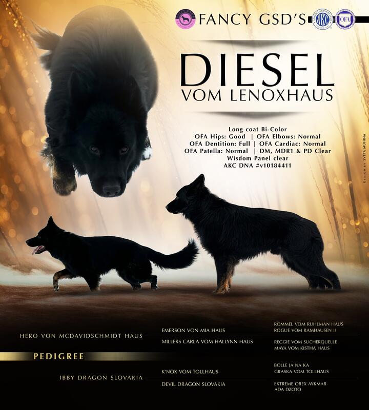 message tayli2000 about this ad Diesel This boy is incredibly sweet, confident and has a great personality! He gets along great with people, kids and other dogs. He does amazing in public and has perfect leash manners. He does have a high prey drive but medium drive overall! We are going to be working on some titles for him! He does have Extreme, Knox and Bolle Ja Na Ka in his pedigree! His mother was imported from Slovakia. Diesel Vom Lenoxhaus Long Coat Bi-color OFA Hips: Good OFA Elbows: Normal OFA Patella: Normal OFA Cardiac: Normal OFA Dentiton: Full DM, MDR1 & PD clear Wisdom Panel Clear AKC DNA Diesel is up for stud to approved females |