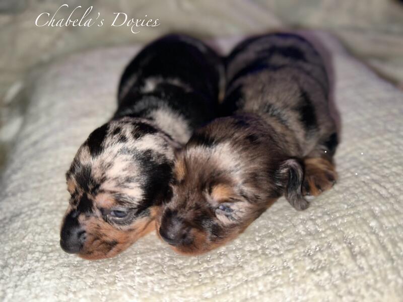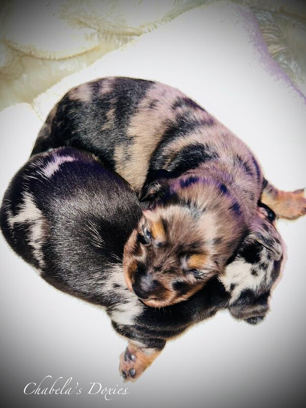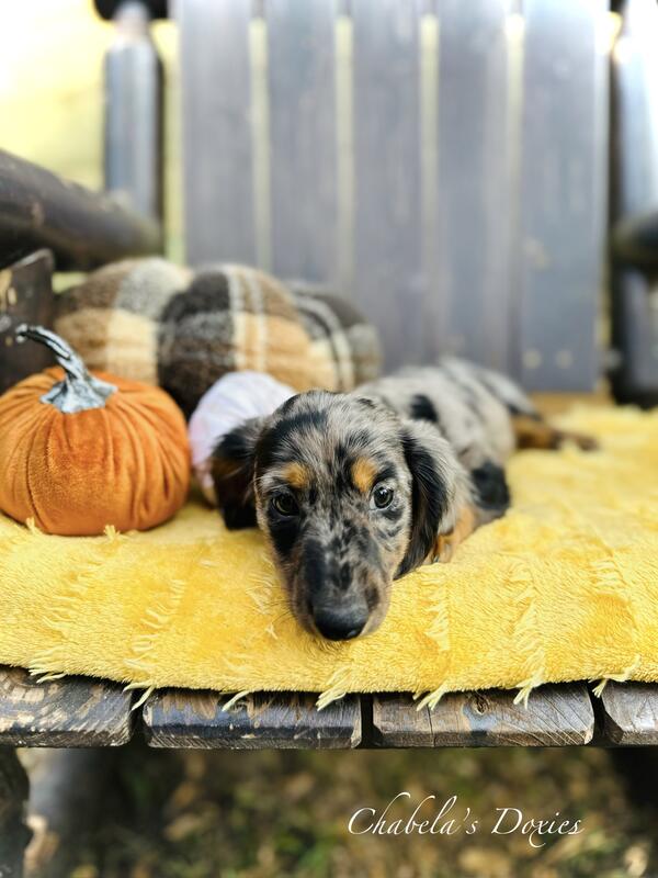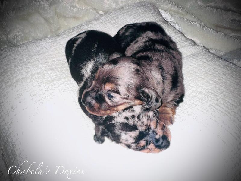 message chabelasdoxies about this ad DOB 8/26 still have 2 mini dapple males left. Parents are on site and you are welcome to come see the puppies. Only serious buyers please. Puppies will not go home till they are fully vaccinated and have a clean bill of health, weaned and eating on their own. Parents are on site. Welcome to come visit and see the parents and puppies. Must call, please no texting 35two-five77- 23eight0. Only serious and responsible people. Prices vary and start at 1,200 checkout the facebook page Chabela Doxies |